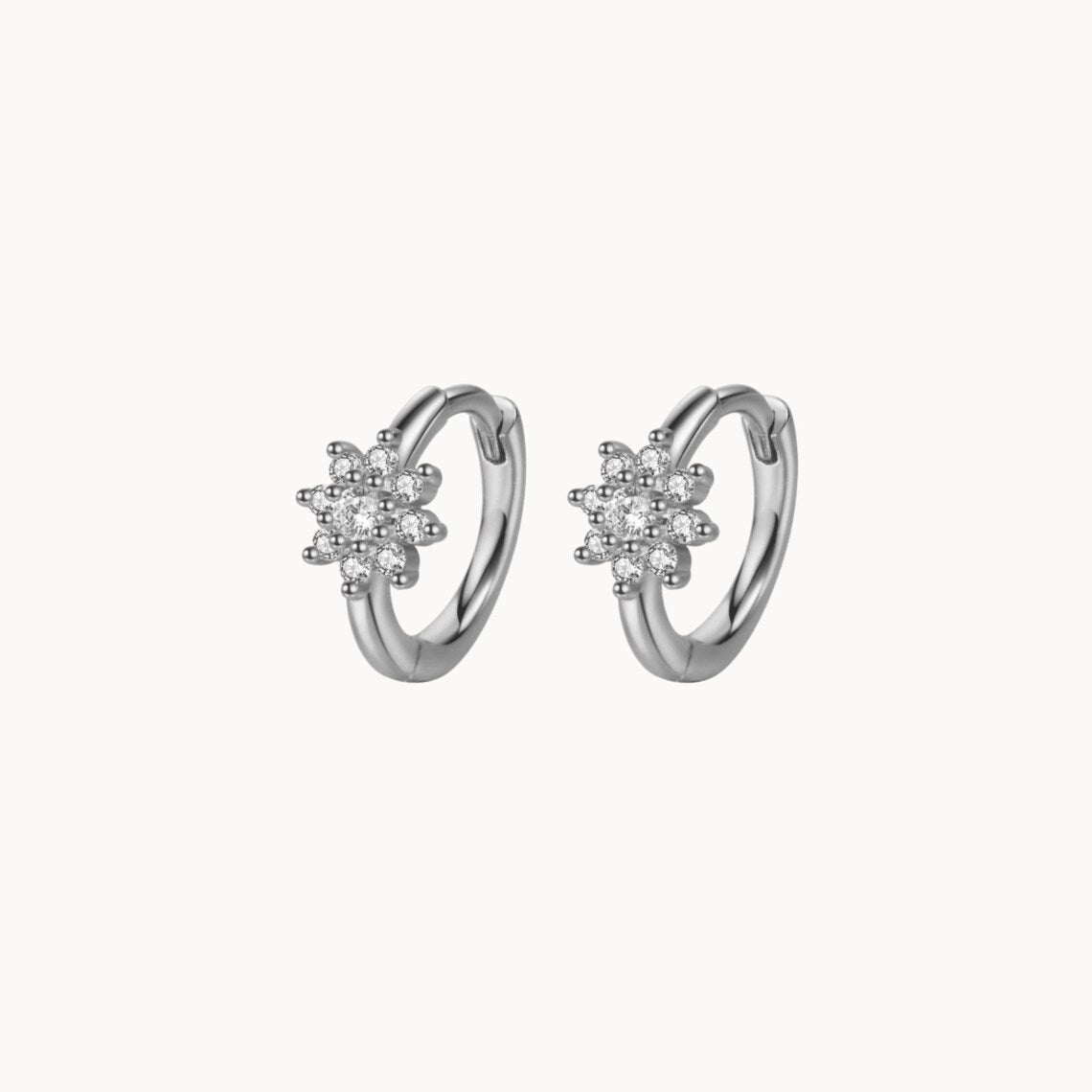 Boucles d'oreilles créoles fleurs zircons, petits cerceaux d'oreilles femme doré ou argent