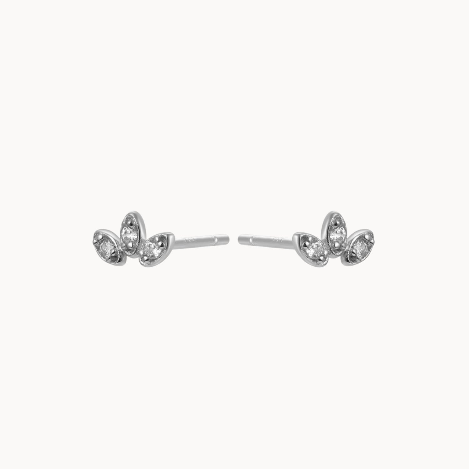 Petites boucles d'oreilles puces fleur trois pétales avec zircons, clous d'oreilles dorés ou argent femme